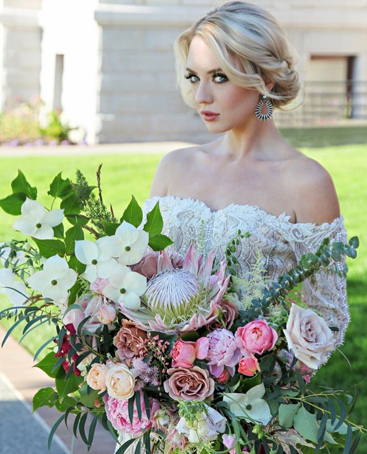 August 22, 2018 Modern Miss Whimsical and unique blooms such as foxgloves, dogwood and protea mingle with garden roses, and eucalyptus to create a unusual and winning look for your wedding day.